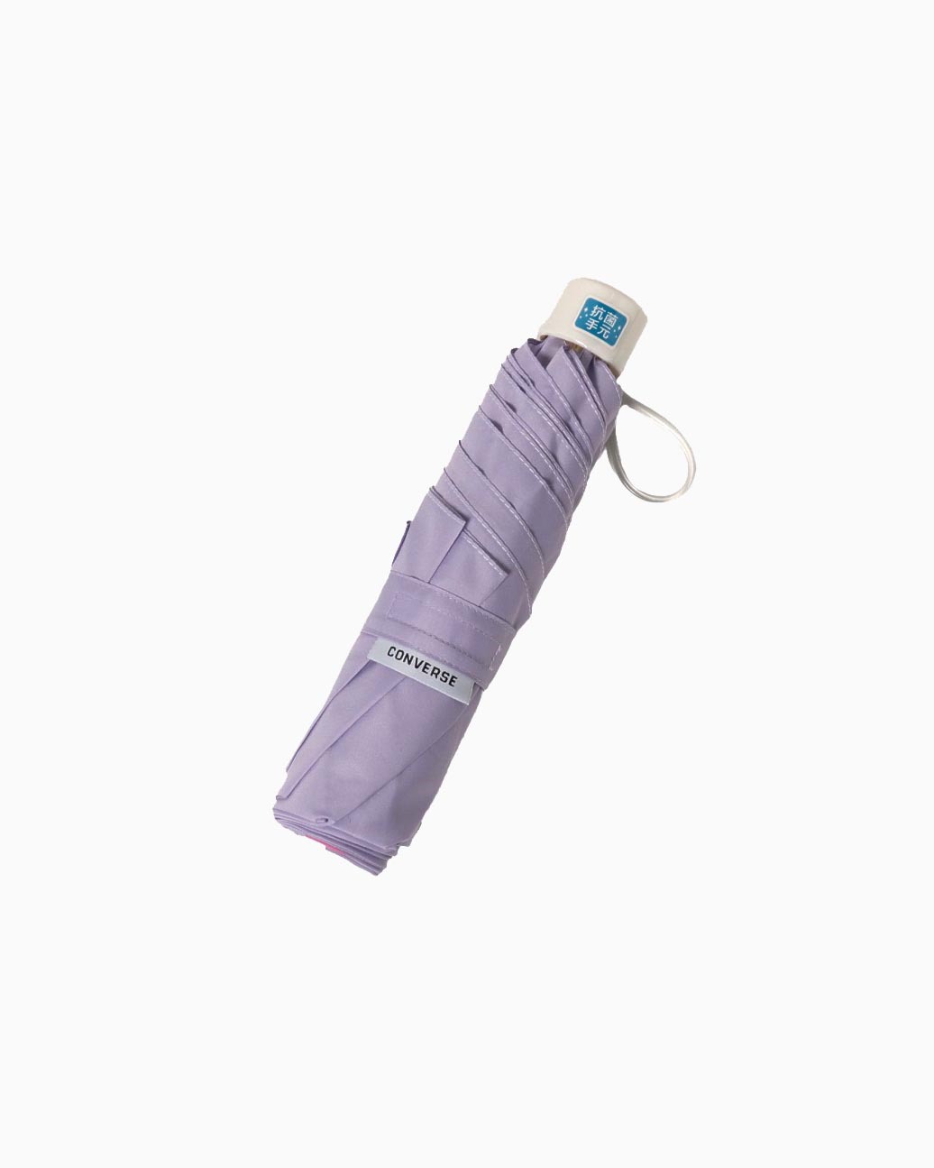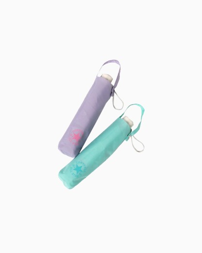 通学に最適なシンプルなワンポイントの無地折りたたみ雨傘。使い勝手のよい無地の傘にconverthtseのロゴがアクセントに。収納袋のストラップはカバンなどに取り付け可能です。手元は抗菌加工を施し、また指を挟みにくい仕様で安心安全な商品です。キッズに人気のブルー、ブラック、パープル、ミントの4色展開。