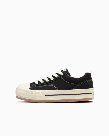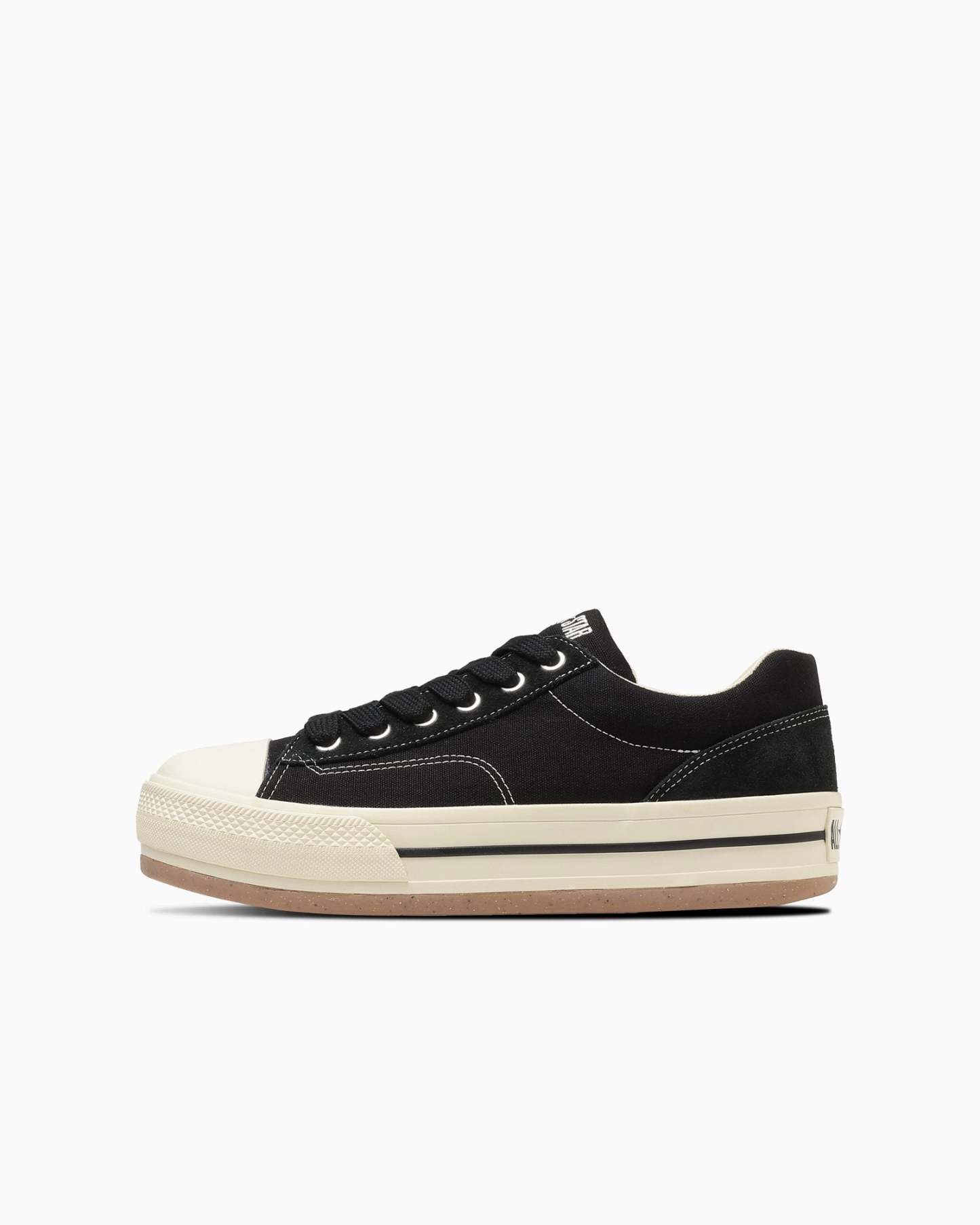 バルカナイズ製法や、トウキャップ、トウガードといったオールスターのアイコニックなディテールが、斬新なシルエットの中にも継承されています。