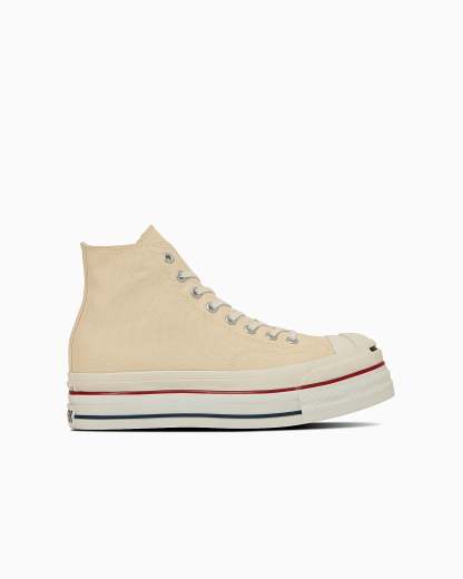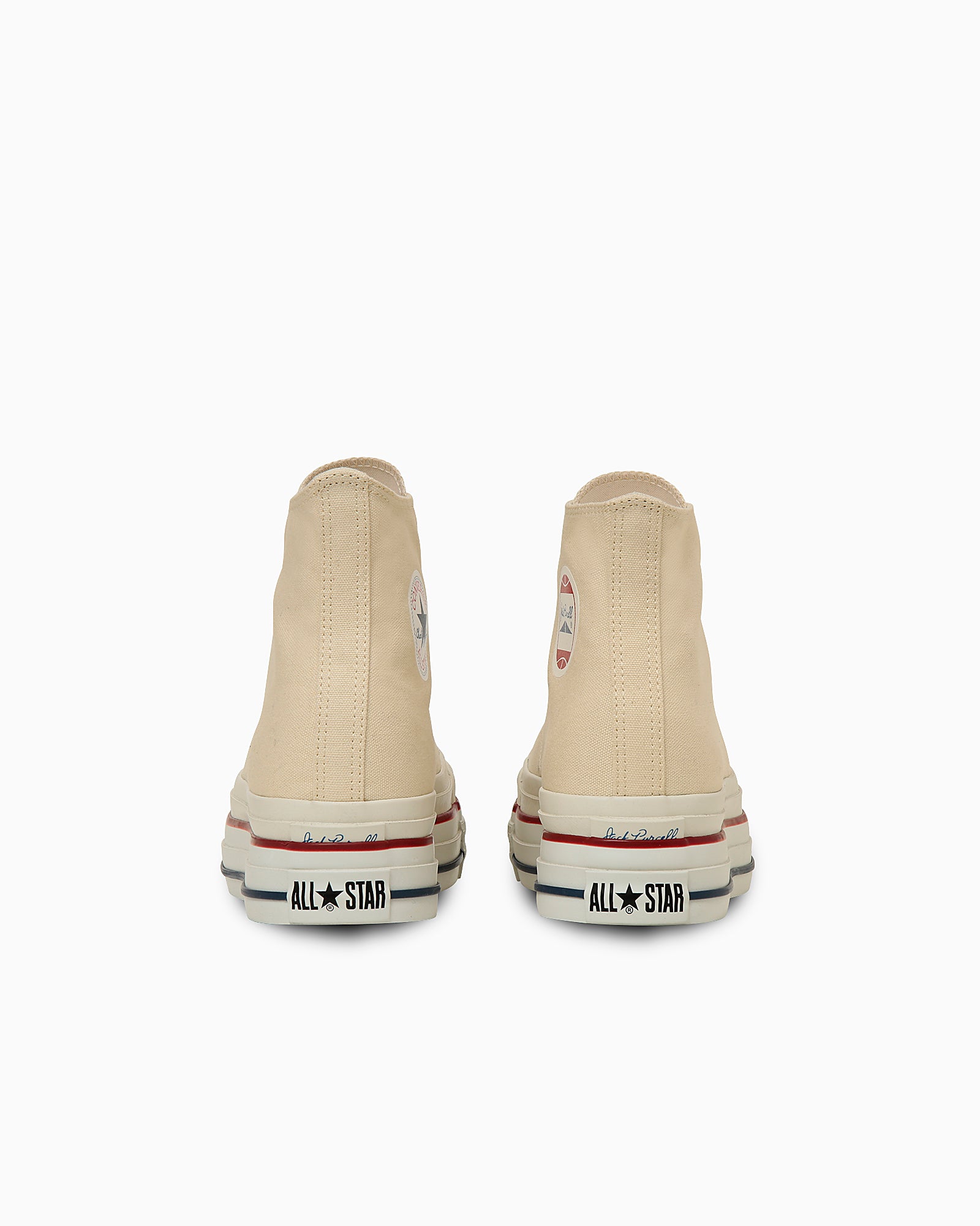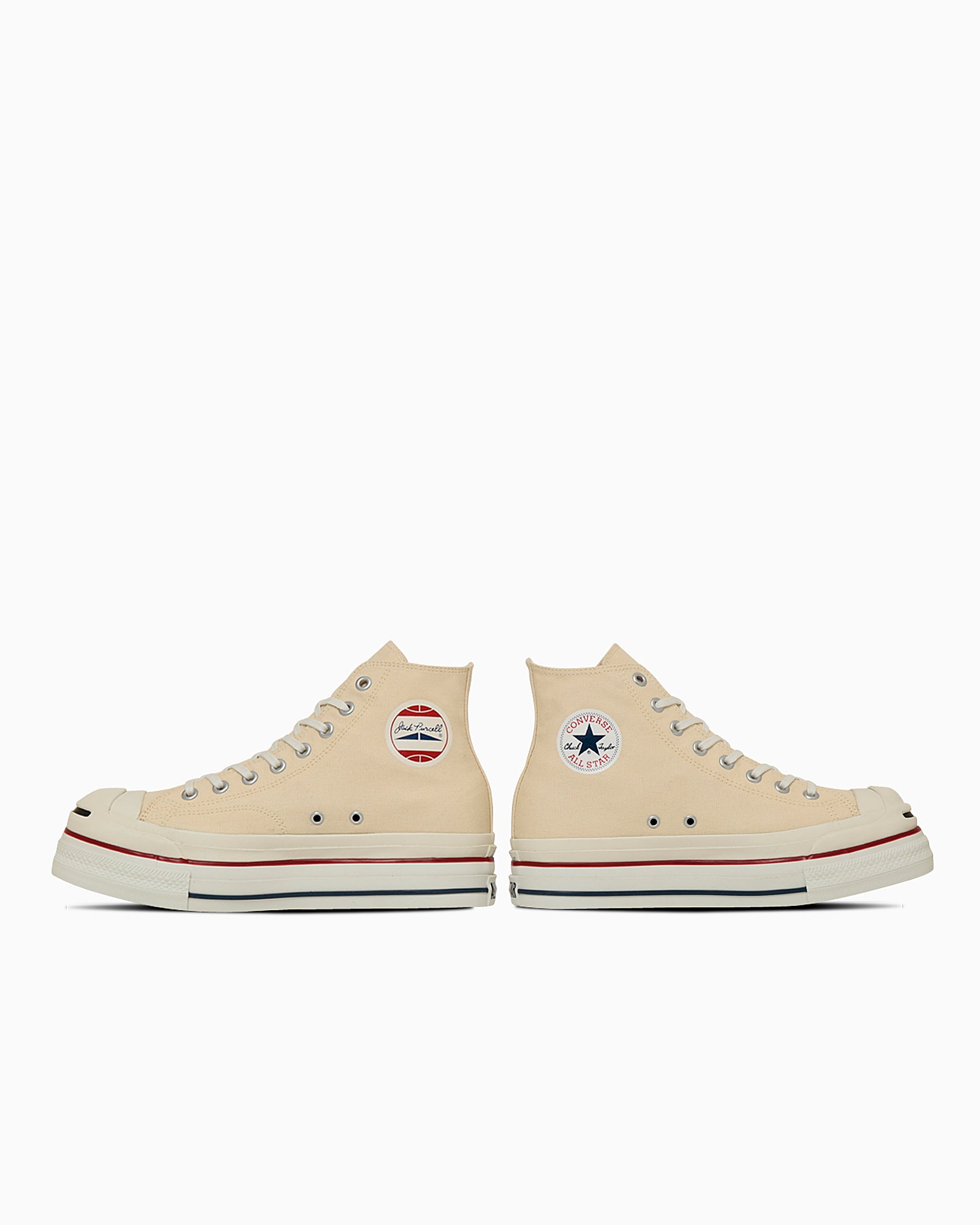 アッパーは、右足がジャックパーセル HI、左足がオールスター HIのデザインを採用。
