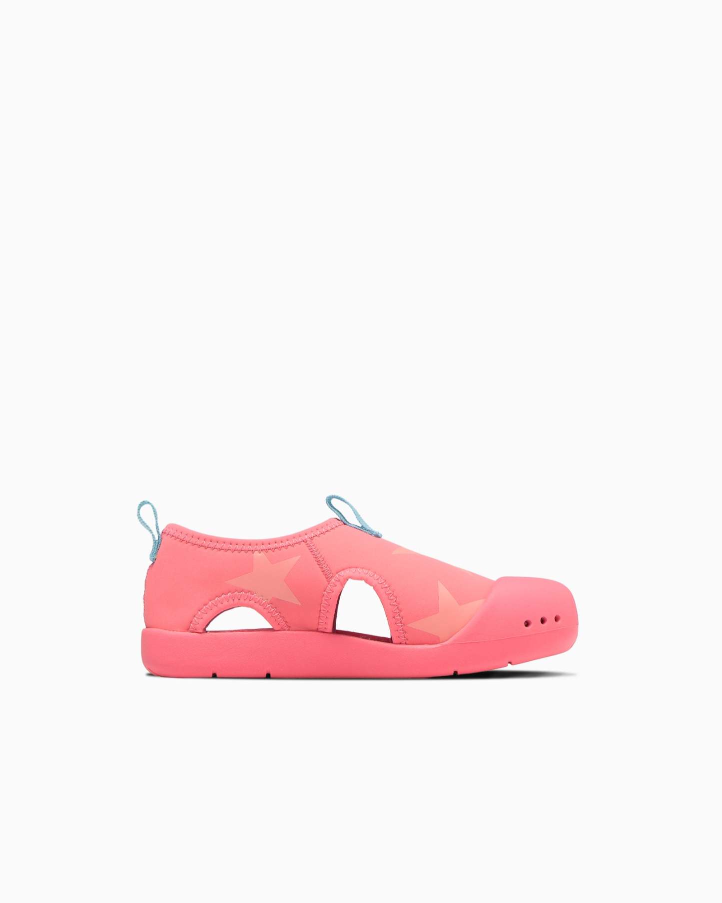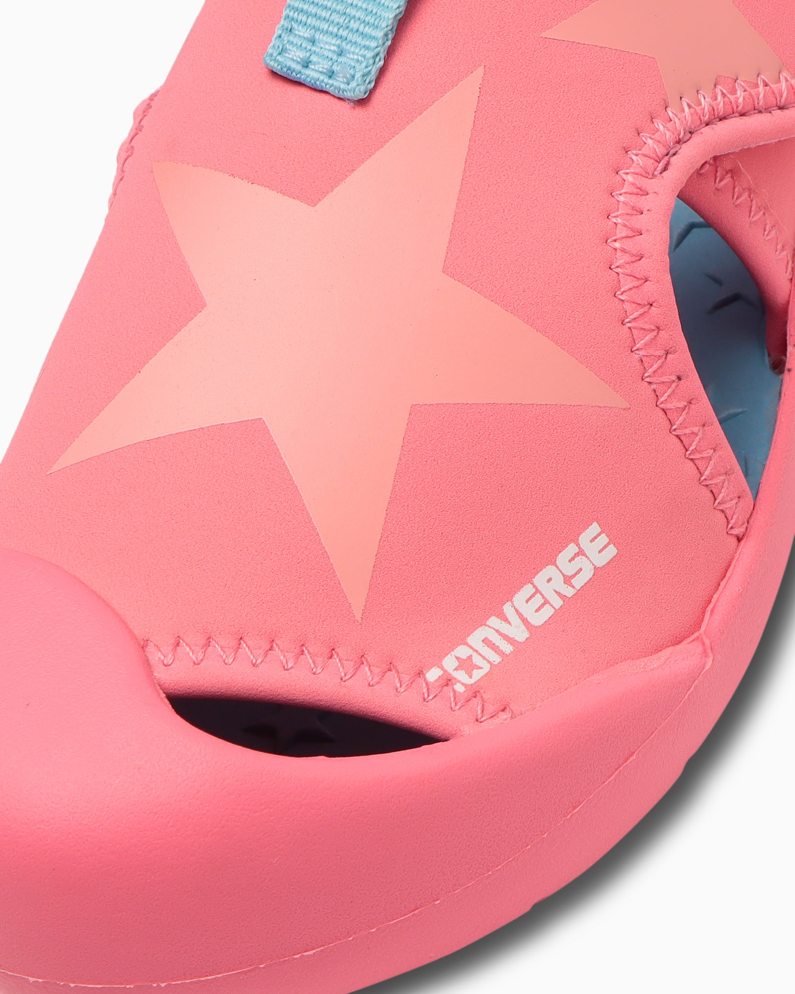 通気性と速乾性に優れたネオプレーン素材をアッパーに採用し、ラバーのアウトソールをつま先まで巻き上げた安全設計。つま先には水抜き穴があり、星柄にエンボス加工したE.V.A.フットベッドは水はけの良い仕様。