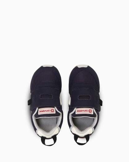 ワンベルトタイプでベルト先にはタブ、踵にはループが付属するため履かせやすく、履きやすいデザイン。