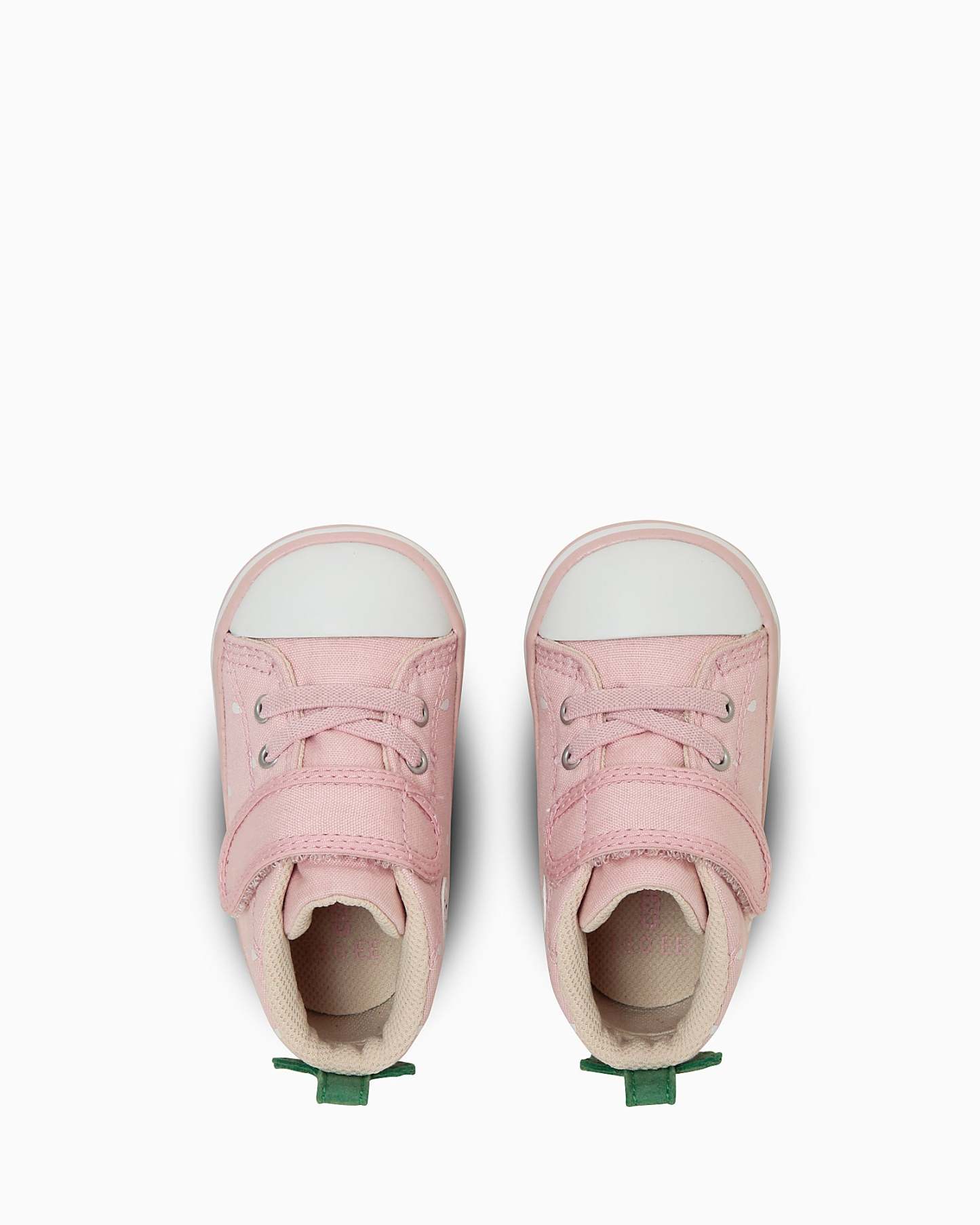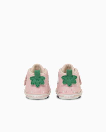 ベビーウェアでトレンドのやさしいパステル調の色合いにまとめた一足。