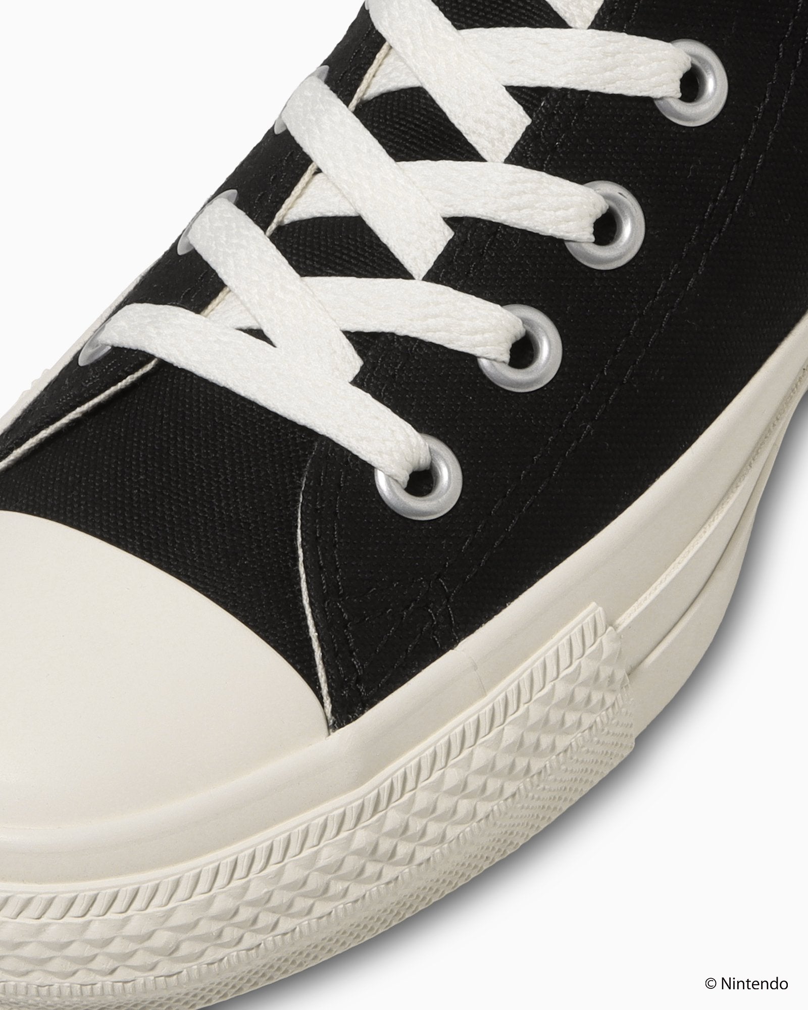 ゲームの特徴的なフォントで表現した『コンバース』と『スプラトゥーン3』のウーブンラベルをタンに付属し、インクのグラフィックにはイカがセンプクしている楽しさを詰め込んだ、細部までこだわった一足になっています。