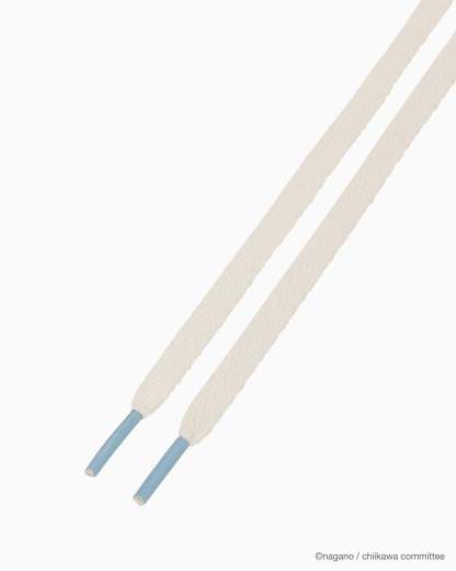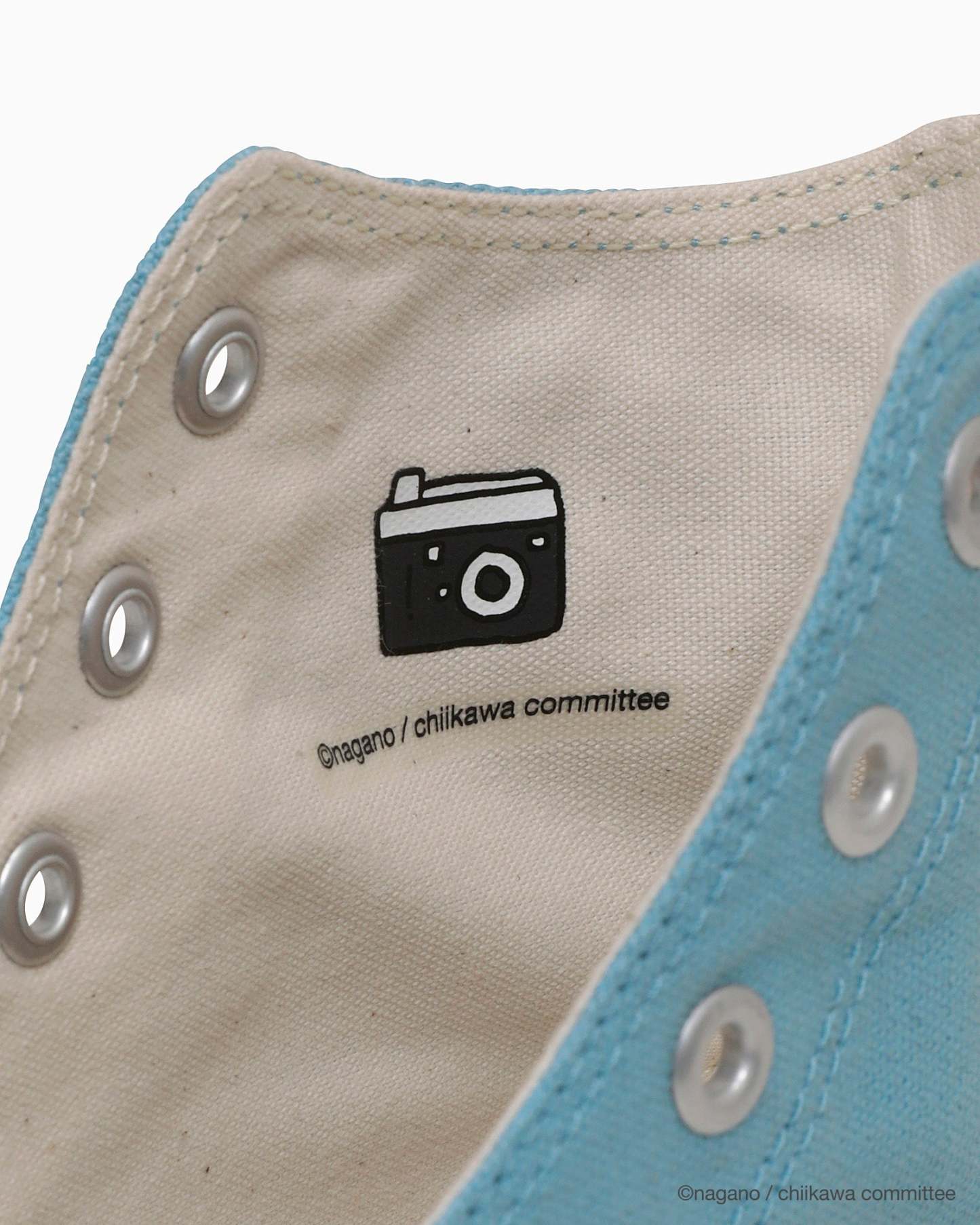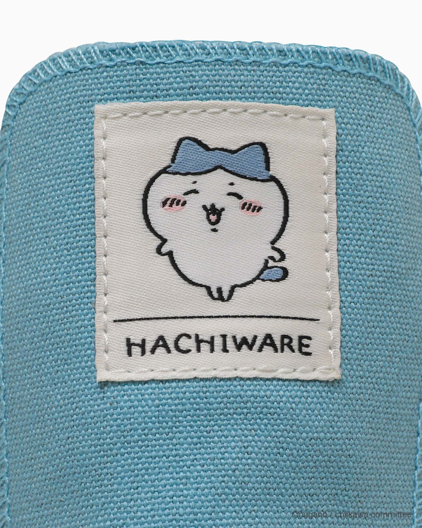 フォントをアレンジしたアンクルパッチとヒールラベル、ちいかわのイラストタッチを表現したテープのラインがポイント。