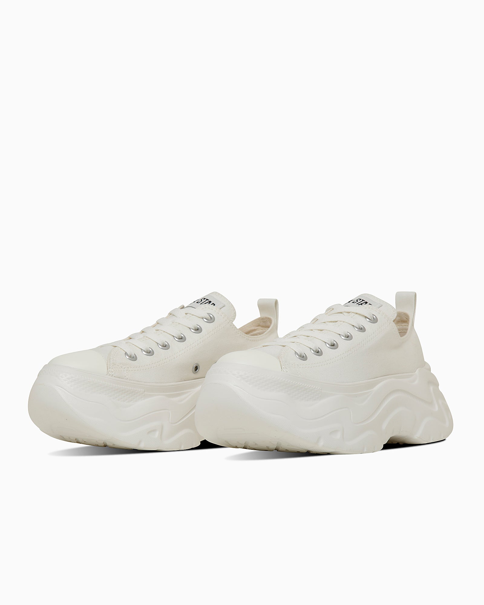 オールスターらしさを残しながらも、厚底ソール部分の大胆な意匠が特徴的なトレンド感のある一足。