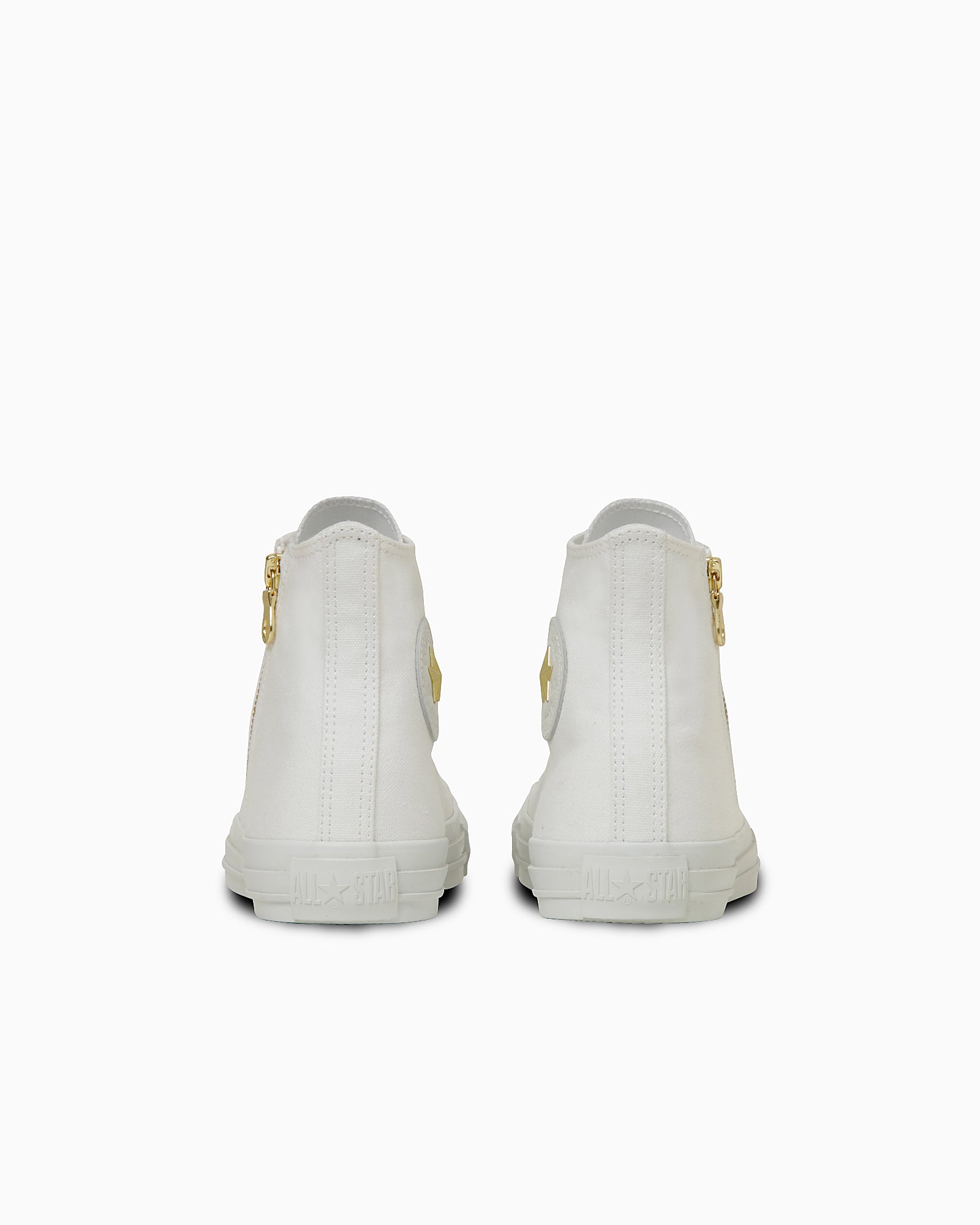 星のスタッズ、ジッパーはゴールド、ハトメやソールはホワイトで統一することでスタイリッシュに仕上げた一足。
