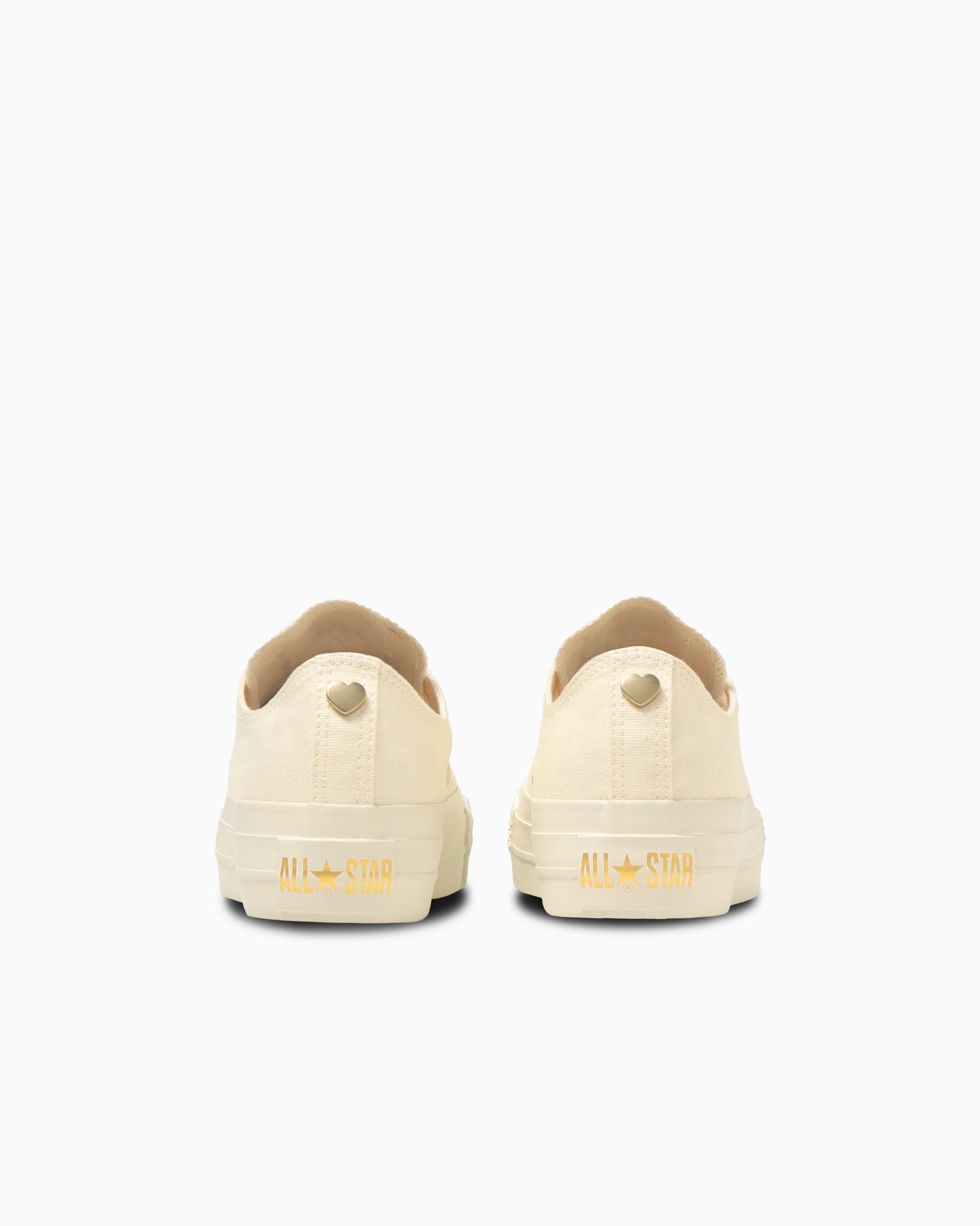 踵紐にハート型のスタッズをあしらい、第一ハトメもハート型にアレンジ。