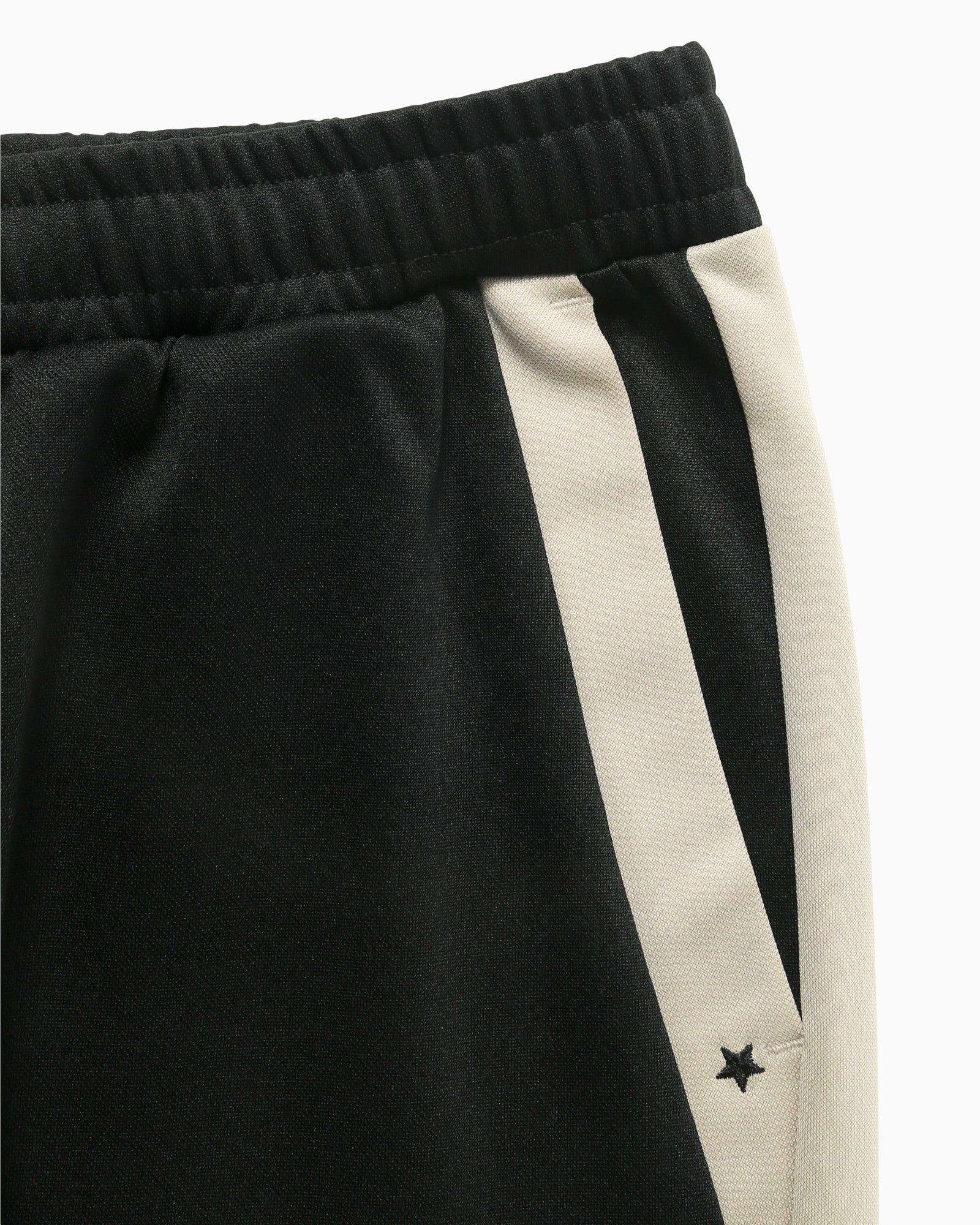 吸汗速乾性を持つポリエステル素材を採用したトラックパンツ。